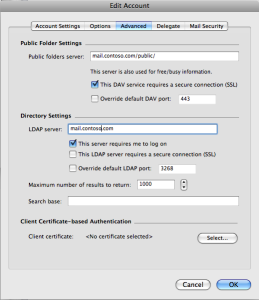 All mail activity is still handled through an SSL secure connection to the Exchange server. Only directory lookup function is changed. Some organizations allow non-secure LDAP access, if yours does not and you are using a separate server for LDAP functions. Then it will be necessary to obtain a certificate that has a matching internet host record to machine name. You can also ignore the dialog box safely – though it is very inconvenient.You can also use this procedure to ensure the error is being caused by LDAP functions.